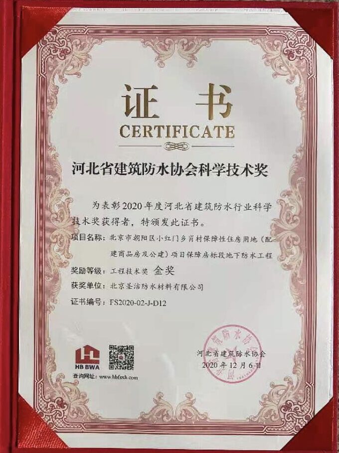 北京圣潔防水材料有限公司成立于1999年,注冊資金2.53億元。致力于系統解決防水問題的探索和研究,經過二十多年的積累與沉淀,圣潔防水已發展成為集產品研發、生產、銷售、施工于一體的規模化公司,是中國防水二十強企業,擁有國家專業防水一級資質。 圣潔防水生產基地占地面積2萬平米,全體員工320人,其中施工人員280人,為員工提供五險保障,公司是中國建筑防水協會常務理事單位、中國建筑業協會建筑防水分會、中國建筑學會、中國質量檢驗協會建材專業委員會會員單位,通過了ISO9001國際質量體系認證、ISO14001環境管理認證。被中國建材市場協會譽為“全國建材系統質量、服務、信譽AAA企業”。歷年國家標準《地下工程防水技術規范》、《地下防水工程質量驗收規范》和《屋面工程技術規范》、《屋面工程質量驗收規范》的參編單位,截至目前為止,圣潔防水主編或參編的國標、行標、地標、團標已達106本。